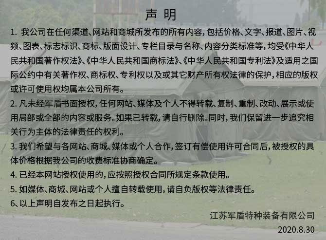 版權(quán)所有:江蘇軍盾特種裝備有限公司    網(wǎng)站備案號:蘇ICP備16064441號-1    網(wǎng)站制作維護(hù):卓越凱欣    本網(wǎng)站部分圖片來源于網(wǎng)絡(luò),如有侵權(quán),請告知?jiǎng)h除